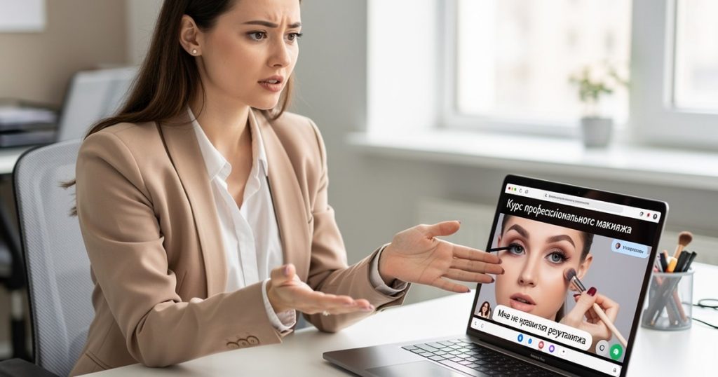 Покупатель получила курс с отсутствующим обещанным материалом и запросила возврат средств. Образовательная организация отказала в возврате курса "Макияж для себя. Базовый", предложив вернуть другой курс.